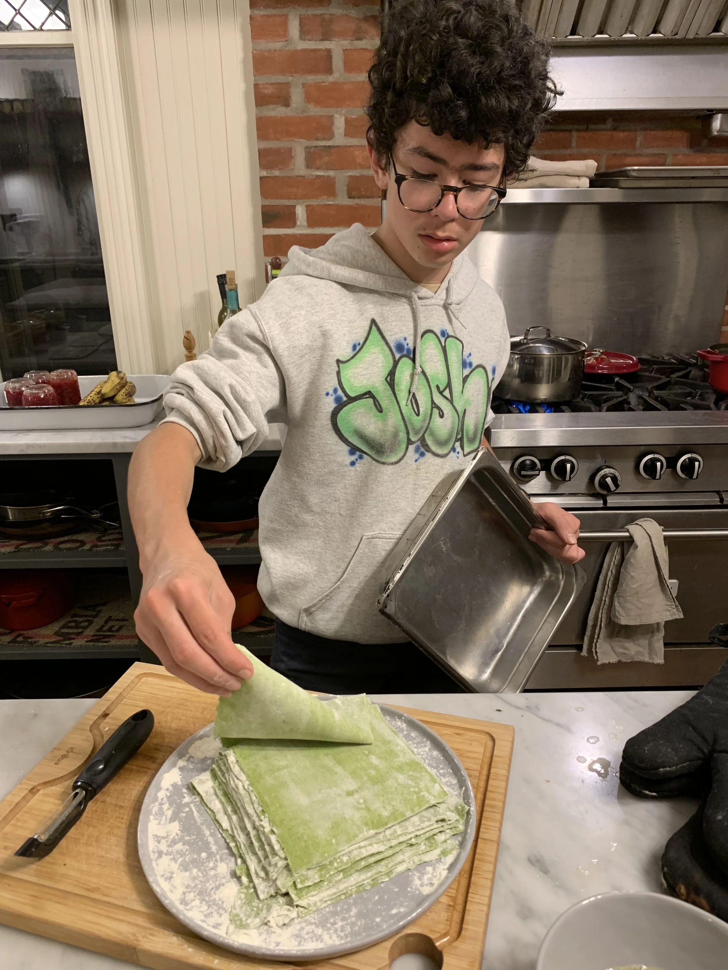Prepping the spinach pasta for lasagna - 2023